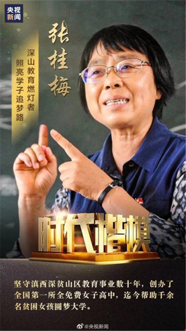 张桂梅,云南省丽江华坪女子高级中学党支部书记、校长,华坪县儿童福利院(华坪儿童之家)院长。全国十大女杰,全国十佳精神文明人物,全国十大师德标兵,全国十佳知识女性,全国先进工作者,全国“五一”劳动奖章获得者,党的十七大代表。