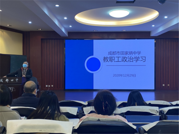 2020年12月,成都市田家炳中学党委书记胡文武利用政治学习时间,分别组织高中部和初中部全体教师集中观看《时代楷模发布厅之张桂梅先进事迹》,向时代楷模致敬,向先进典型学习。