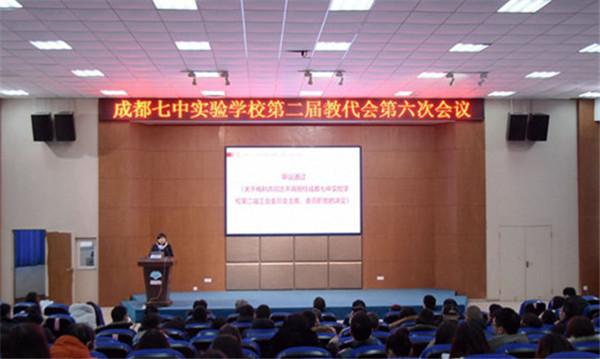 1月7日下午,成都七中实验学校第二届教代会第六次会议在学术厅举行,学校教代会正式代表、列席代表、特邀代表出席会议。大会由工会副主席李玲主持。会议在庄严的国歌声中开始。