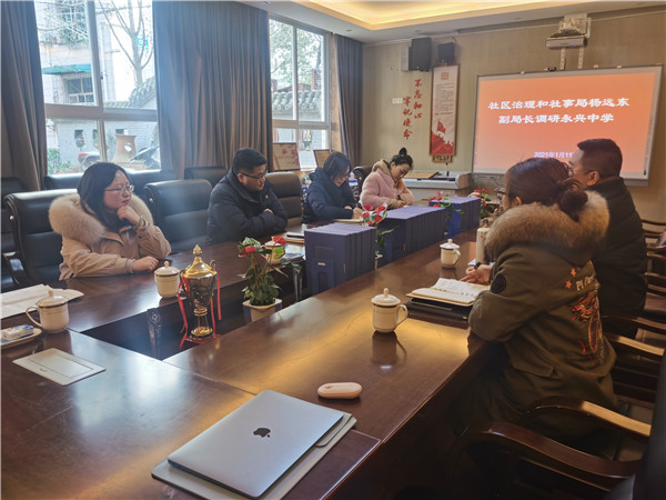 2021年1月11日,四川天府新区社区治理和社事局副局长杨远东一行到永兴中学调研办学情况。
