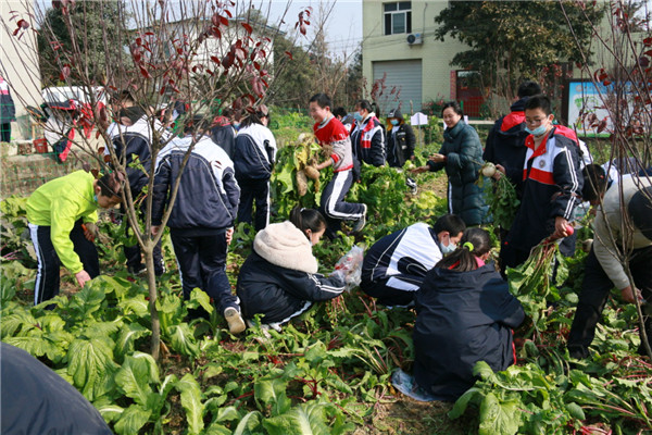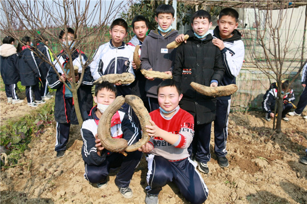 土豆种植完成后,同学们又一起收割了萝卜、青菜,一起体会丰收的乐趣。