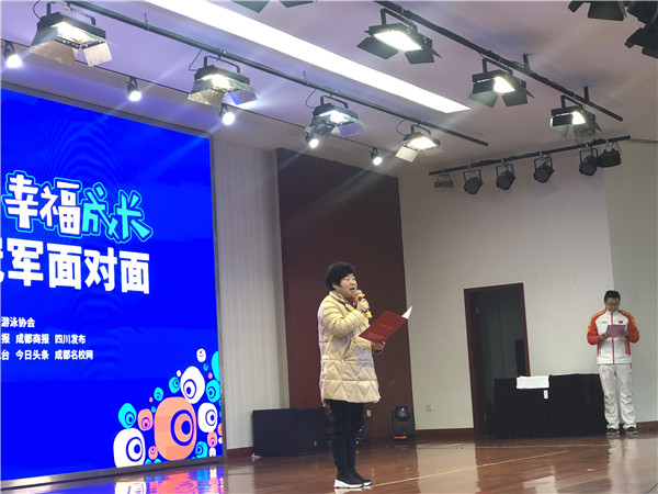 2021年1月15日,由成都七中实验学校(以下简称:七中实验)、四川省游泳协会主办的“阳光导航,幸福成长,我与世界冠军面对面”交流分享活动在七中实验学校报告厅举行。成都七中实验学校校长毛道生,小学部校长许丽萍,四川省游泳协会主席李新双,花样游泳世界冠军蒋文文、蒋婷婷,四川省游泳协会副秘书长徐刚出席了此次活动。