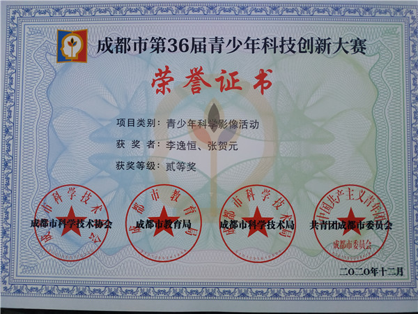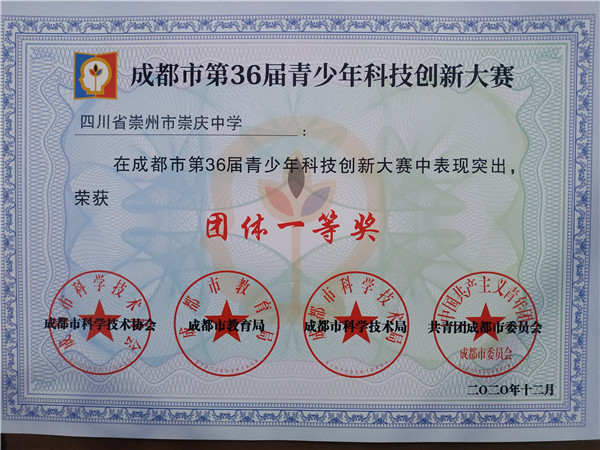本次科创大赛获奖教师2人次,学生27人次。16个奖项中一等奖1个,二等奖4个,三等奖11个。崇庆中学荣获团体一等奖。