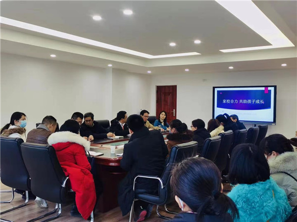 为积极发挥家委会沟通、服务、监督、参与、管理、协调的作用,密切家校联系,构建家校共育良好局面,1月20日下午,成都市树德实验中学(东区)在敏行楼会议室举行了“家校合力 共助孩子成长”期末校级家委会会议。学校党支部书记、校长吴振华,教学副校长杨大学,德育副校长郭杰,后勤服务中心主任王宇阳,德育主任肖臻臻以及全体校级家委会成员参加了会议,本次会议由德育主任肖臻臻主持。