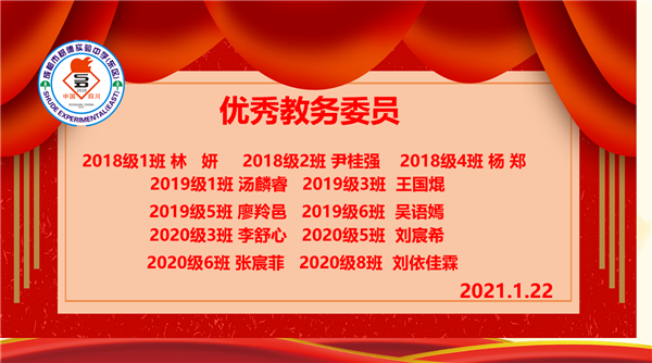 从秋到冬,从银杏飞扬到雪花飘落,美丽的时光转瞬即逝。成都市树德实验中学(东区)学子迎来了期末的总结表彰大会。默默奉献,勤勤恳恳的教务委员和电教委员们也迎来了属于他们的高光时刻。