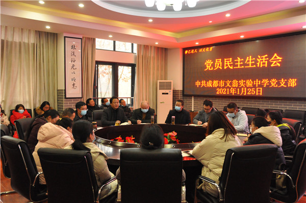 为进一步规范落实基层党建工作,提升党员政治意识,1月25日,成都市文翁实验中学全体党员同志在学校二楼会议室召开了党员民主生活会,会议由支委纪检委员、副校长张晓峰同志主持。
