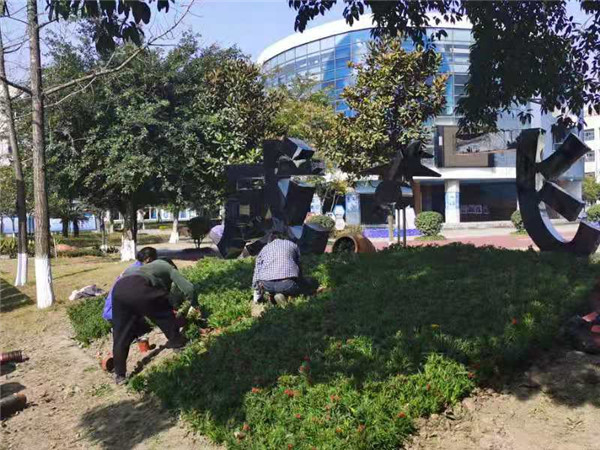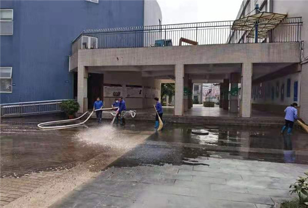 在总务处的安排和带领下,物业人员对校园卫生进行了全面大扫除。对教室内的讲台、桌椅进行了仔细的清洁和整理;清除了部分死角杂物;对校园每个角落进行消杀,为师生返校提供了干净卫生的校园环境。