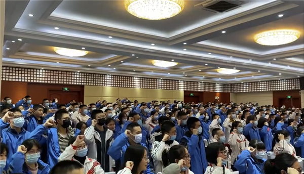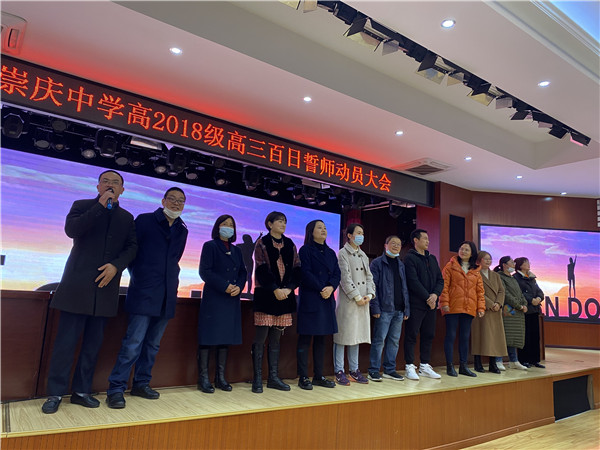 2021年2月28日,四川省崇庆中学2021届高考百日誓师大会在学校学术厅举行。高三年级领导组全体成员、全体毕业班班主任、全体高三学子齐聚一堂,决战百日,为2021年高考出征。