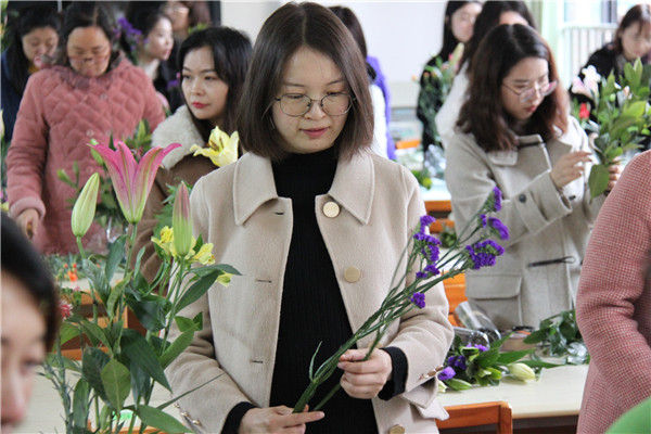 三月,春意浓浓的日子;三月,属于女性的日子。乍暖还寒中,阳光一天天明媚起来;忙碌辛劳中,女教工们也迎来了一年一度的“三八”国际妇女节。为进一步激发女教师爱岗敬业、锐意进取的工作热情,成都市双庆中学精心组织开展了插花体验活动,希望在这个属于世界妇女的节日里,让女教师们放松一下、浪漫一下,尽情地抒发自己的心绪和情怀。