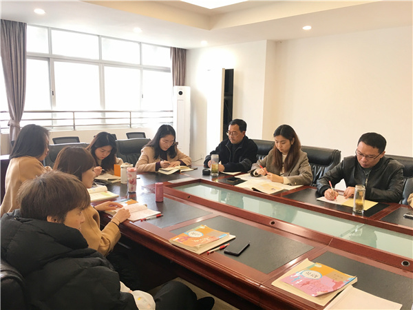 最后,王玉梅教研员以八年级第二单元为例,介绍了英语教材中文本分析教学方法的运用,强调了将英语教材的目录、提纲、单元文本在教学中联系起来的重要性,并带领全体老师们进行文本里的重点勾画,使全体老师以一个新的视角来看教材。