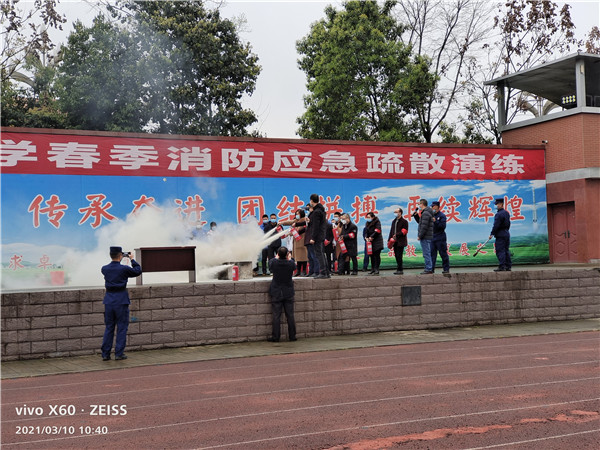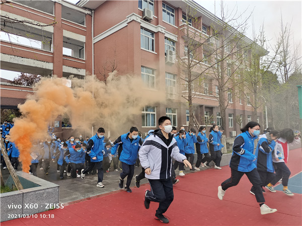 2021年3月10日,四川省崇庆中学举行消防应急疏散演练,全校师生员工参加。崇州市应急局、崇州市蜀州路消防站、辖区崇庆派出所等单位派员参与指导。