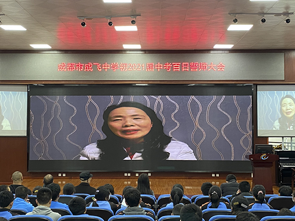 家是永远的港湾,父母是孩子们坚强的后盾。只要有了父母的支持和鼓励,再大的风浪也不畏惧。会上,初三年级八个班的家长代表们通过视频、音频发来了他们的祝福。一张张亲切的笑脸,一声声鼓励的话语,感动并激励着同学们勇往直前。在这温馨感人的氛围里,余泓校长也送上美好寄语,号召同学们在最美的青春年华里积极进取,借助成飞中学不断发展的春风,用汗水努力拼搏,找准目标,超越自我,播种梦想,收获成长。