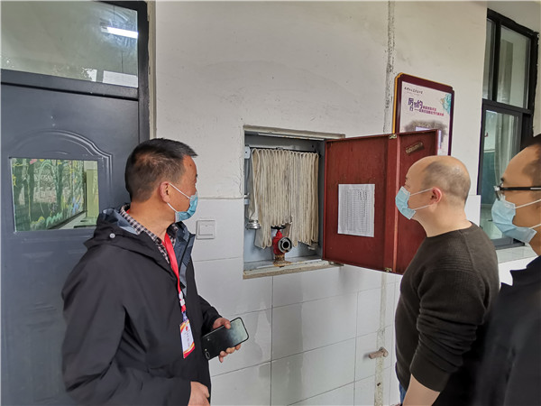 在学校副校长杨晓伟、行政与后勤服务中心主任王新勇、学生成长指导中心主任陈斌伦的陪同下,易德远督学巡视了校园,通过检查消防设施、查看校舍及实验室,对学校的安全工作进行仔细巡查。