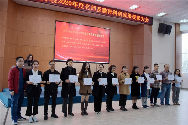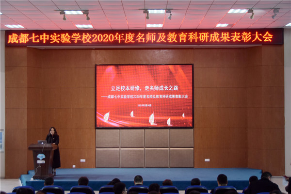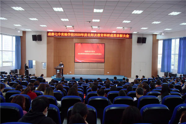 在过去的一年里,学校积极搭建丰富多样的平台培养教师,校级名师工程又推出一批名师;老师们积极上进,勤于实践、撰写优质论文、开展课题研究,取得了可喜的成绩。2021年3月19日下午,七中实验学校全体教职工集聚学术厅,举行了以“立足校本研修,走名师成长之路”为主题的2020年度名师及教育科研成果表彰大会。会上,毛道生校长宣读了2020年度名师名单,并对学校新构建的荣誉体系做了解读。学校中心组领导为获评2020年度名师的老师授予奖证,为在教育教学研究方面取得成绩的老师颁发证书。