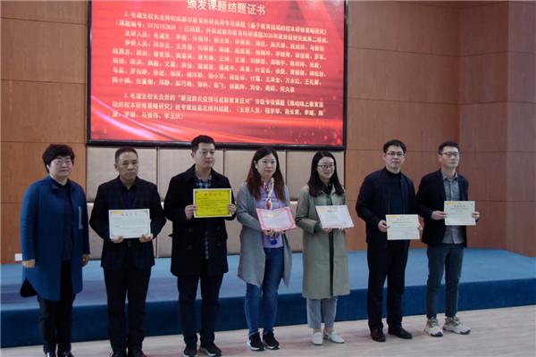 李林一校长助理为温江区优秀论文获奖老师颁发证书