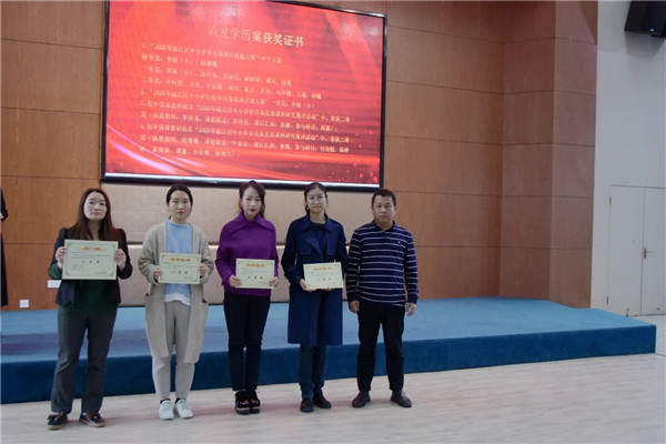 初中部梁大才校长为市区青年教师赛课及教学技能比赛获奖老师颁发证书