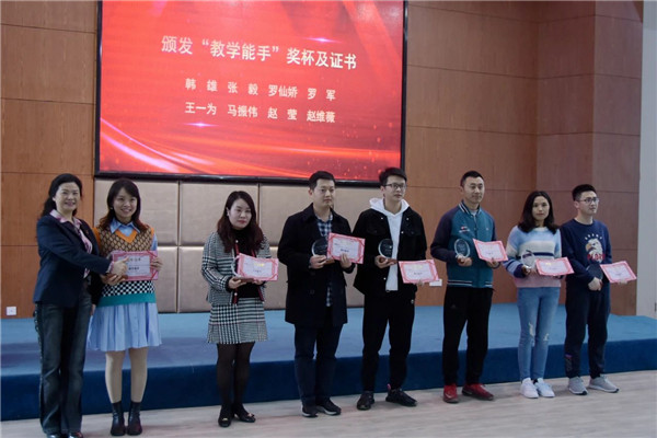 程学琴副校长为“教学能手”颁发奖杯及证书