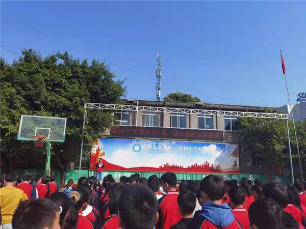 3月29日晨会,三岔初中学生代表在国旗下的讲话,启动“节水进校园、节水进家园”活动的序幕,倡议书精炼概括了世界水资源危机和中国人均淡水资源短缺问题,同时指出了环境污染破坏水资源的恶劣生态问题。最后发出号召“保护水源,刻不容缓!节水,从点滴做起!不要让我们的眼泪,成为世界上最后一滴水!”