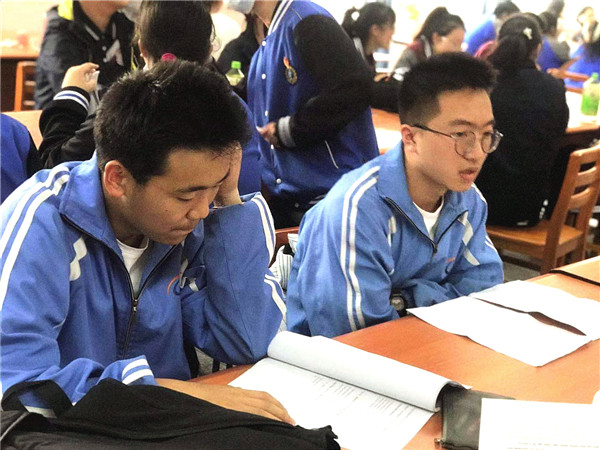 下午两点,成飞中学的同学到达三十七中,正反双方的辩手们正在为比赛进行充分的讨论与准备。
