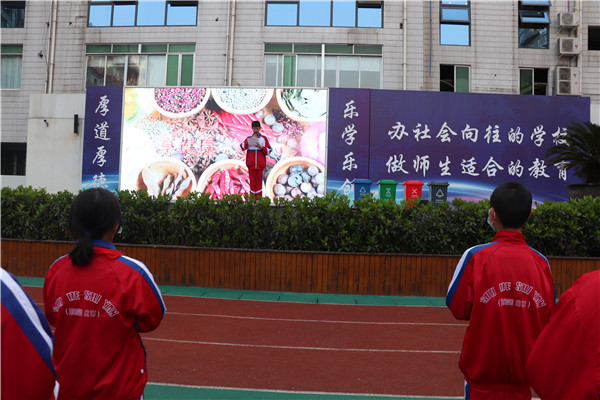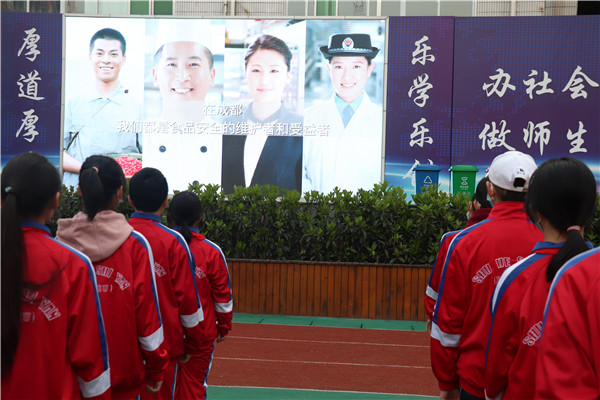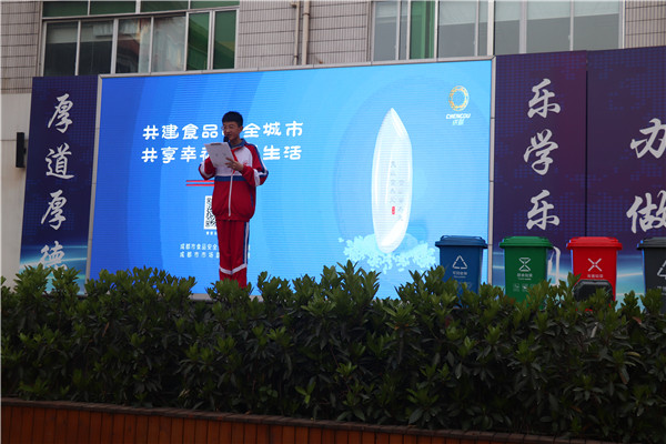 为进一步提高学生的食品安全意识,保障校园食品安全,引导师生共同关注并积极参与食品安全监督、共同构筑食品安全防线,近日,由学校德育处和总务处共同组织的创建食品安全城市宣传活动在成都市树德实验中学(东区)操场举行。