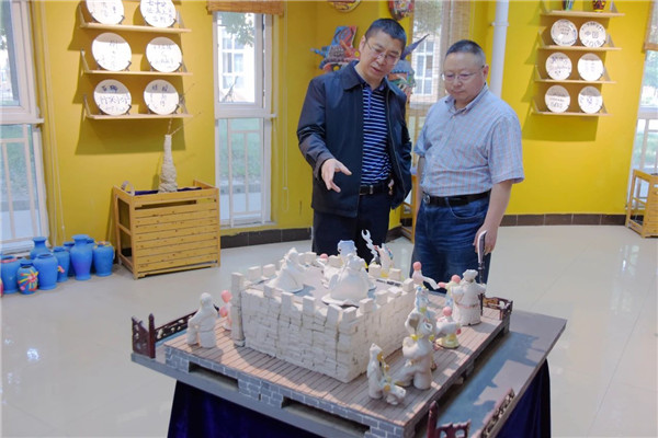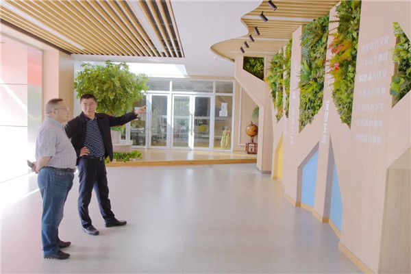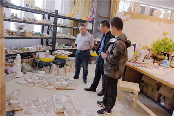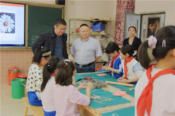 在校长毛道生的陪同下,李杰教授来到风雨操场、悦陶坊、扎染室、书法教室,观看了师生们的七彩壁画、陶艺作品、扎染创意、书法临帖等,对于师生的艺术素养水平,李杰教授给予了高度评价。