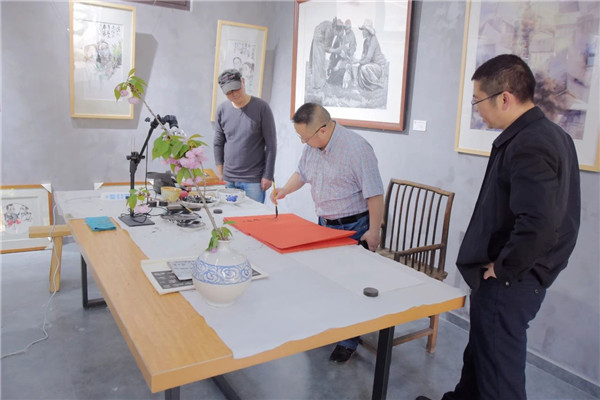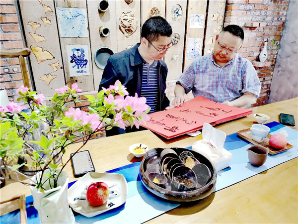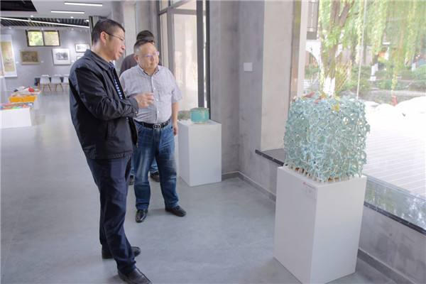 在冠城文创中心,李杰教授兴致勃勃地观看了美术教师和部分学生的书画作品,大加赞赏,并给予了中肯点评。随后,李杰教授挥毫泼墨,题字留念。