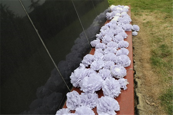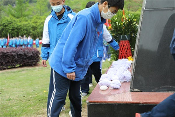 全体师生依次向先烈敬献花朵,为烈士扫墓。革命先烈永垂不朽,民族精神代代相传。