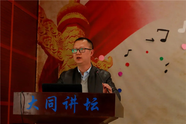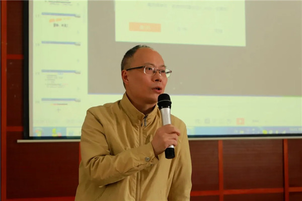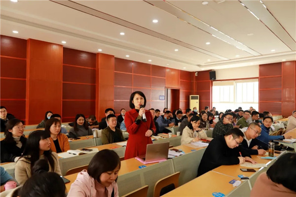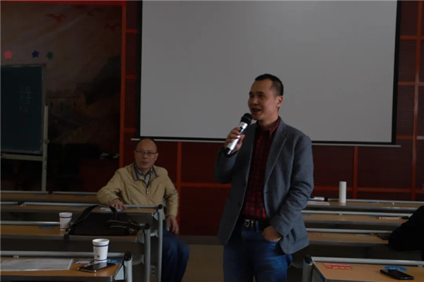 成都二十中副校长胡林对本次教研的主题进行分析:如何在课堂中进行分层教学,突出学生的个性化展示。