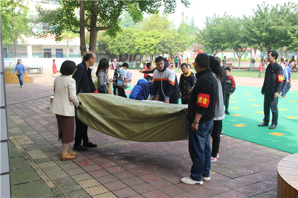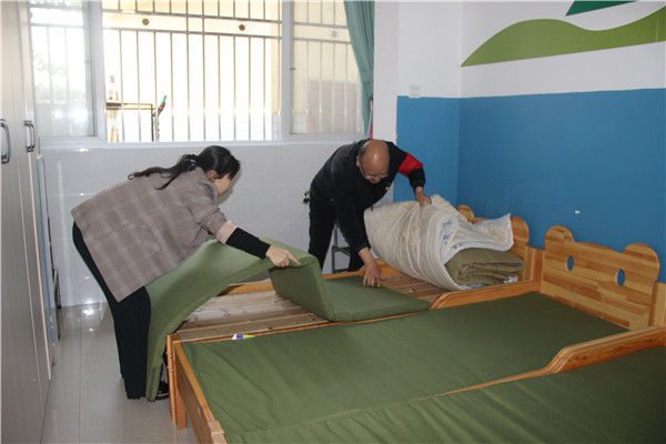 捐赠仪式后,彭州中学师生志愿者将40套崭新的床上用品搬进学生宿舍,党员教师志愿者又将床上用品一一铺在了学生们的床上。彭州中学学生志愿服务队成员还与特教学校的弟弟妹妹们进行了游戏互动。