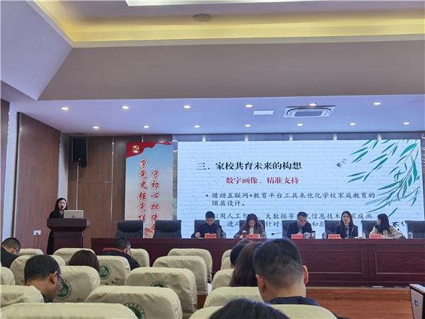 2021年4月13日,四川省彭州中学王筱秋老师在彭州市教育系统德育工作会上做了主题为《家校共育促成人 携手同行助成器》的交流发言。她从家校共育背后的理念、家校共育务实的做法、家校共育未来的构想三个方面对彭州中学家校共育工作进行了分享。她提到,彭州中学家校共育工作中坚持的理念是做“学生生命的合伙人”,学校与家庭要相互尊重、彼此信任,分工协作、优势互补,沟通顺畅、相互促进;未来学校将与时俱进,利用大数据为家庭数字画像,进而提高学校家庭教育的针对性和有效性。她的分享获得了与会代表的一致好评。