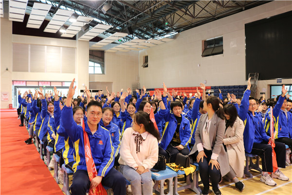 各班级学生代表依次登台,大声宣誓,喊出自己的梦想,喊出对班级的美好祝愿!