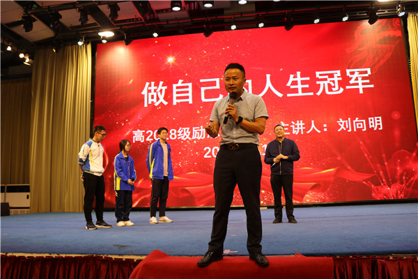 本次励志活动,在学校领导的支持下,由年级主任向义修主持,邀请了高考励志演说家、青少年励志教育导师、师生心身健康高级导师刘向明,他的成长经历感染着每一个师生,也点燃了高考学子们的梦想,更激励了孩子们奋斗人生、振兴中华的爱国热情。