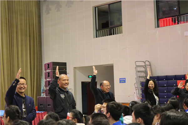 刘向明老师以“一分钟的拍手”游戏活动,用幽默诙谐的方式,引导学生明确目标,激发潜能,克服紧张情绪,相信自己,创造奇迹。