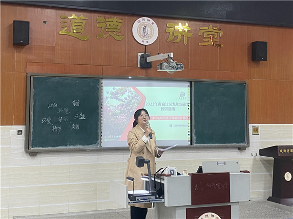 中考渐近,为了能更高效的复习,2021年4月15日,以“基于目标达成的语文课堂设计”为主题的展示课教研活动在成都市大弯中学召开。活动由大弯中学初中语文教研组长彭妍主持。青白江区九年级全体语文教师齐聚一堂,以饱满的学习热情参与到此次活动中来。