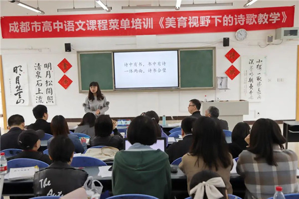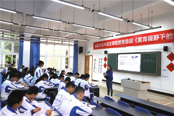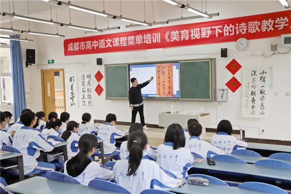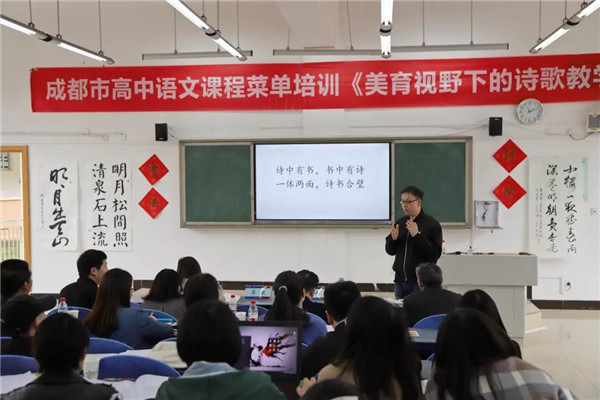 4月15日上午,由成都七中实验学校(成都冠城实验学校)高中语文组承办的成都市高中语文菜单培训《美育视野下的诗歌教学》第二场培训活动在学校三阶一楼展开。