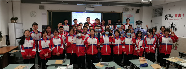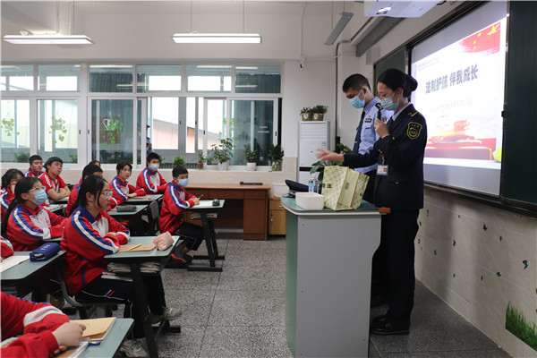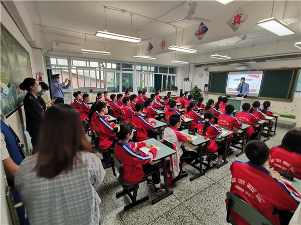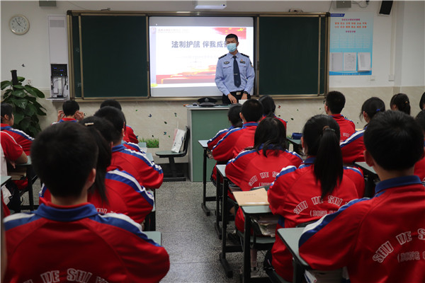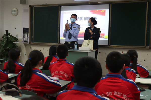 成都市公安局轨道公交分局勤务三支队(筹)四大队的警官通过真实的案例向同学们展示了青少年违法常见的行为,提醒同学们在学习生活中加强防盗、防毒等自我保护的意识。