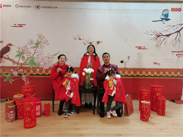 李雨嘉妈妈带着两个妹妹在万汇校园过除夕