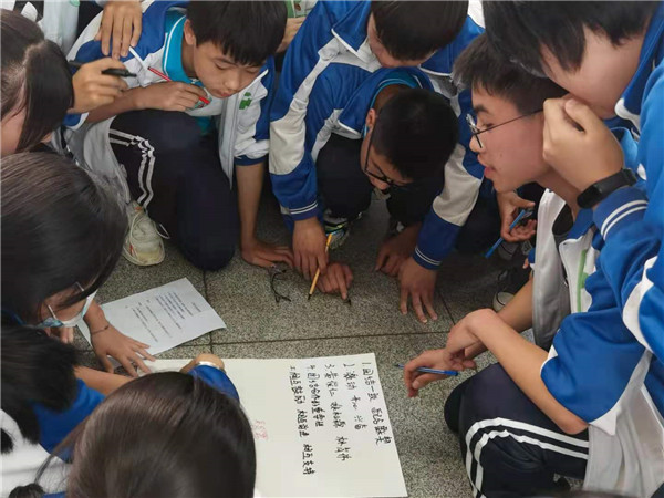 团体活动环节,同学遵循要求,为自己小组不落后出谋划策、团结协作、积极行动、反思总结。