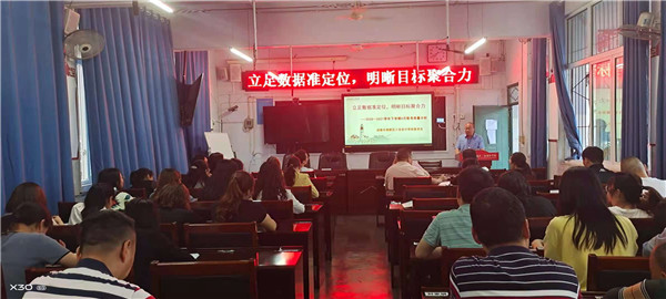 会上,教务处干事李霞结合统计数据对各班进行了具体分析。她比较了各班总体成绩、平均分、优生率、一次性合格率、学困率等评价指标,明确了七八年级各学科在17所联考学校中所处的位次。七八年级各位老师明确了自己任教学科的优势和不足,也深刻意识到班级与班级之间存在的差距。同时,李霞干事还对考试中出现的问题进行了总结,希望各班扬长避短,积极寻求对策,力争突破,实现年级和班级的位次提升。