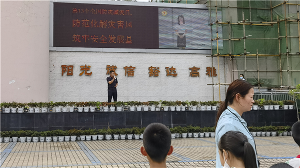 5月19日上午大课间,随着地震避险警报声响起,处在一楼的学生在老师的带领下安全迅速疏散到指定位置,其他楼层的学生在老师的引导下抱头蹲在座椅旁边避震。一分钟后,随着疏散警报拉响,其余楼层学生在老师的带领下安全疏散到操场指定位置。全体师生安全避险、疏散到操场总共用时2分15秒。