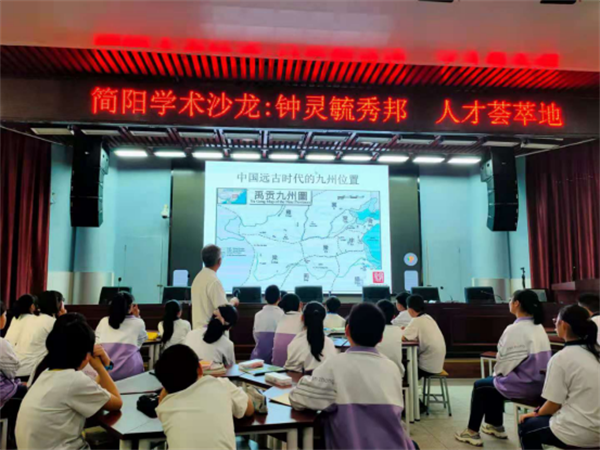 2021年5月13日下午,四川省简阳中学社会科学普及基地在河西校区阶梯教室开展了以“钟灵毓秀邦,人才荟萃地——简阳乡土人文地理”为主题的学术沙龙活动。此次活动特邀请原简阳市人大副主任、省特级教师、省作协会员蒋向东老师,向简阳中学和三星中学地理教研组老师们及简阳中学部分初中学生,就简阳乡土人文地理作了一堂幽默风趣、内容翔实、别开生面的讲座。
