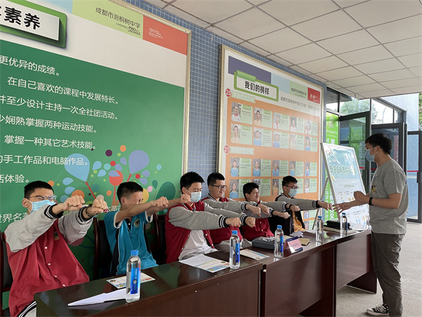 第一个旅程是考前心理团体辅导。青羊区心理团队的老师,在泡桐树中学体育馆二楼,以团体辅导的形式,给100多位同学进行考前心理团体辅导。在专家团队的指导下,孩子们现场非常迅速地形成克服问题的团队,相互交流、相互帮助、相互积极暗示,非常愉悦地度过了这段旅程。当问到同学们这个环节的活动感受时,他们说:“好久没有这样轻松了”、“感觉到好轻松呀”、“即便之后还有考试,但是此时此刻,我确实很轻松很放松!”。