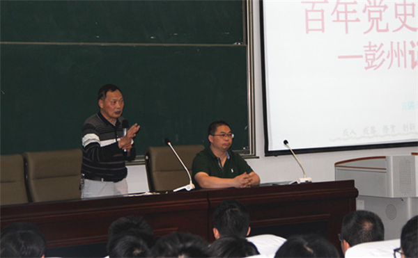 刘光元老师的讲述从彭州中学校友——革命先烈何秉彝、杨达等入手,一下就将同学们引入国民革命的峥嵘岁月。随后,刘老师分别从大革命时期、土地革命时期、抗日战争时期、解放战争时期、新中国时期娓娓道来,向学子们讲述了在彭州这块土地上,共产党人为了神圣的信仰和使命奋斗的历史。
