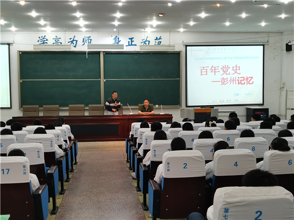 2021年5月26日,四川省彭州中学举行了以“百年党史-彭州记忆”为主题的彭州党史报告会。本次彭州中学报告会是彭州市关工委和教育局主办的百年党史巡回演讲。主讲人是成都市关工委刘光元老师。学校高一年级学生200余人到阶梯教室现场聆听,其余学生则在各班教室聆听报告。报告会由彭州中学政教处副主任谭晓东主持。