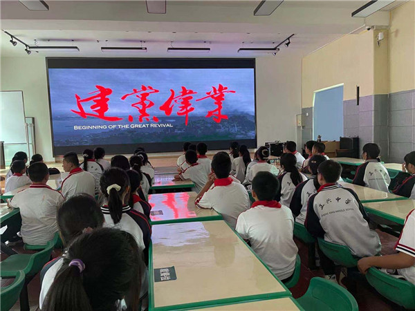 5月28日,四川天府新区正兴中学在“苏码头教育讲堂”开展《建党伟业》观影活动。正兴中学党员、团员、少先队员、教师近200人参加活动。