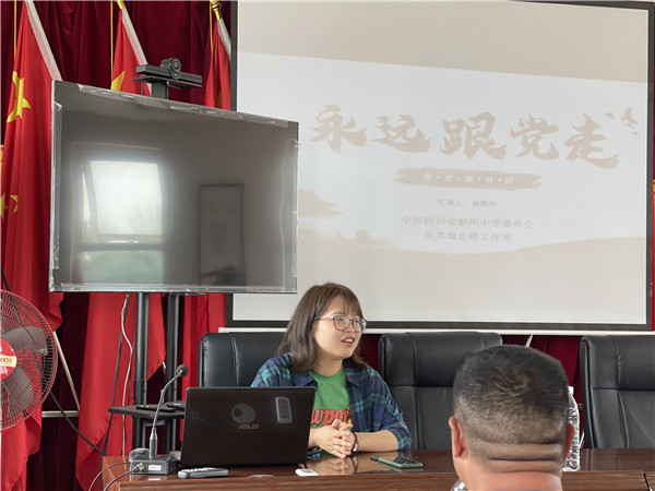 党史学习活动在枣子树村党委会议室开展,来自彭州中学的历史老师蒋雪琴作主讲,向村民们讲述了中国共产党的百年征程,讲述了中国人民如何在共产党的领导下,一步一步从站起来到富起来,从强起来到美起来的奋斗历程,回顾了中国共产党领导中国人民进行的艰苦卓越的伟大斗争、领导中国人民进行伟大的社会主义建设取得的丰功伟绩。村民们听得热血澎湃,热泪盈眶。