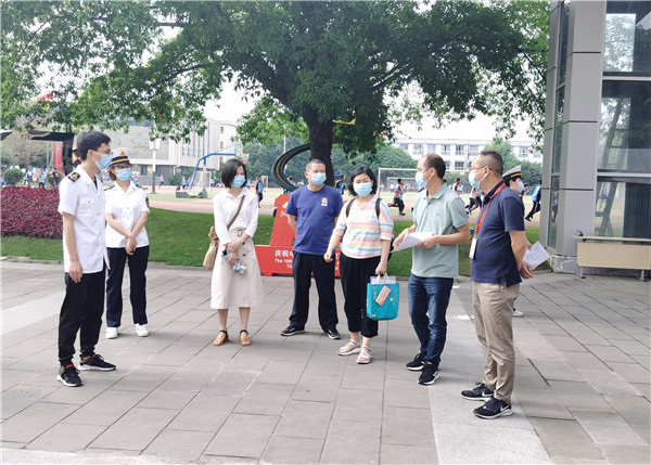 6月10日下午,成都市成飞中学作为中考考点之一,联合了多部门进行了防疫应急演练。