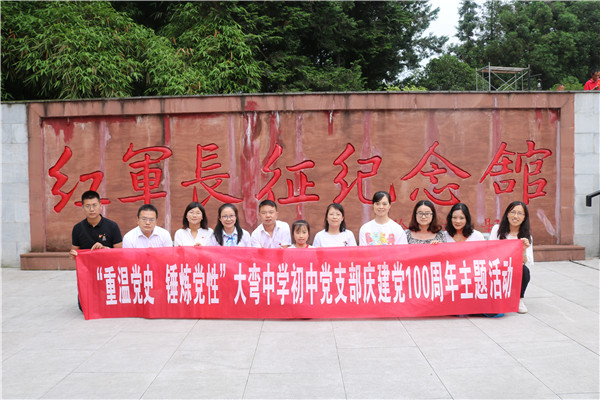 为庆祝建党100周年,深化党史学习教育,6月26日上午,成都市大弯中学初、高中党支部赴邛崃红军长征纪念馆,进行爱国主义教育和革命传统教育,提高党员干部党性修养,坚定党员干部理想信念。