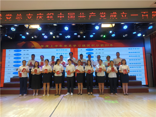 任永康校长和党总支专职副书记王宽学表彰学校年度优秀党员和“学习强国”学习标兵之后,党总支四个支部及师生合唱团以合唱和演讲等形式,深情歌颂党的丰功伟绩。他们带来的歌曲有《唱支山歌给党听》《前进吧,中国共产党》《我的祖国》等。