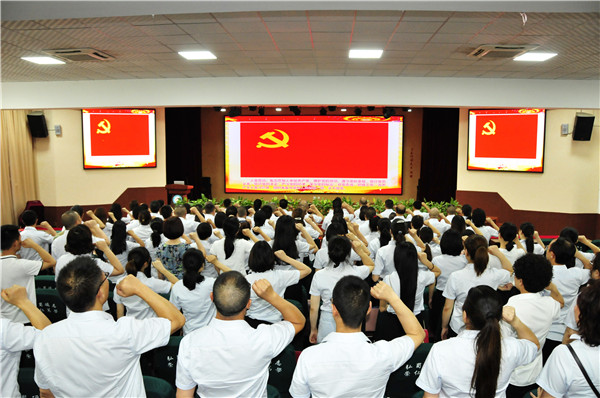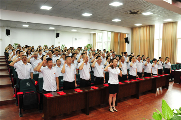 全体党员在总支委员、教务处主任杜春兰的带领下,面对鲜红的党旗,庄严地举起右拳,重温入党誓词,铮铮的誓言表达蜀城中学党员教职工“用心教书,用爱育人”的坚定信念。